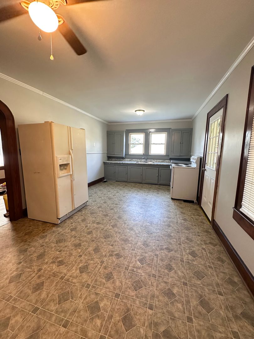 3 bedroom, 2 bath home situated on large corner lot, gravel driveway, Living Room, Large Open Kitchen with range and refrigerator, Hardwood Floors, Laundry hookups in enclosed back porch. Call Burlington Rentals for appoiutnment at 336-228-7368