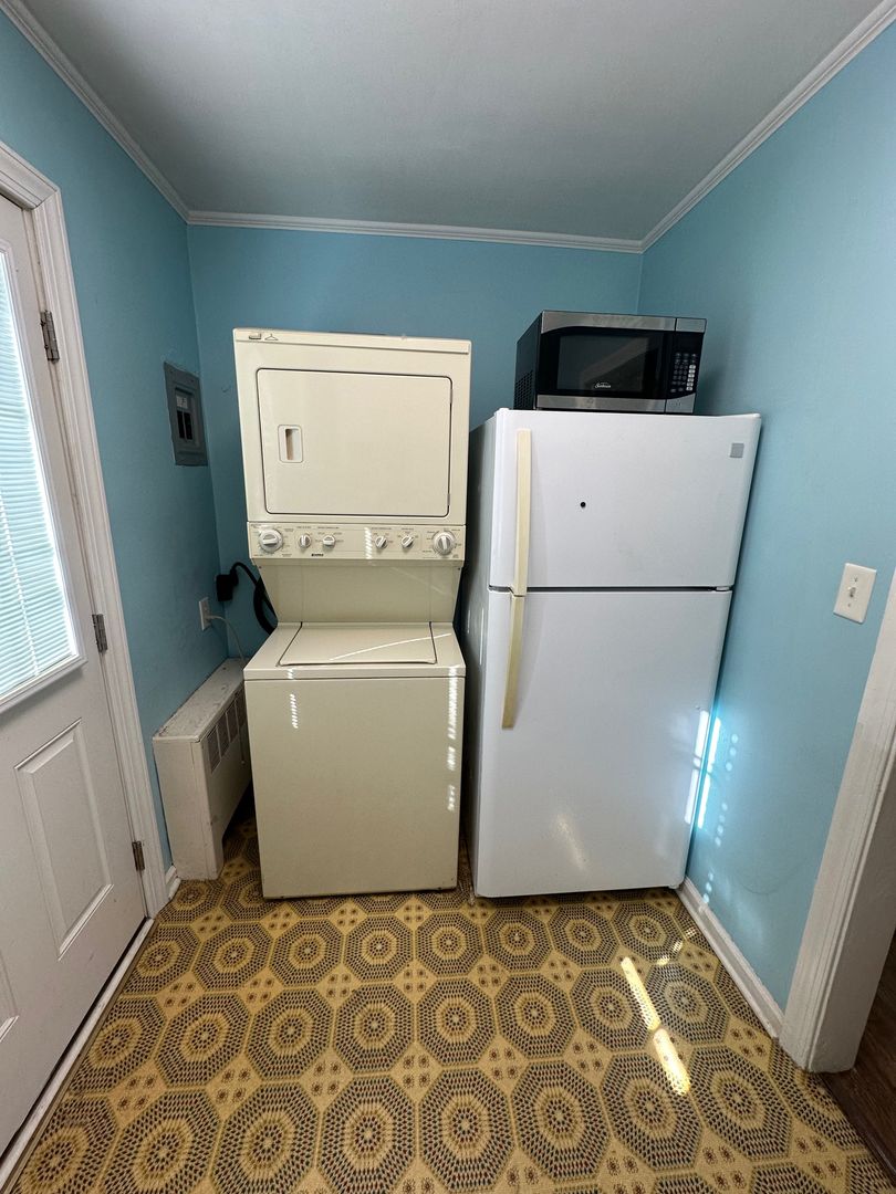 Nice 2 bedroom and 1 bath condo at Brookwood Gardens for rent exclusively through Burlington Rentals. Hardwood floors throughout except kitchen. Spacious living room/dining area combo. Refrigerator, small electric range, microwave and Stackable washer/dryer. Updated bathroom with tub/shower. Window A/C units. Heat, water/sewer, dumpsters and lawncare covered by HOA.
