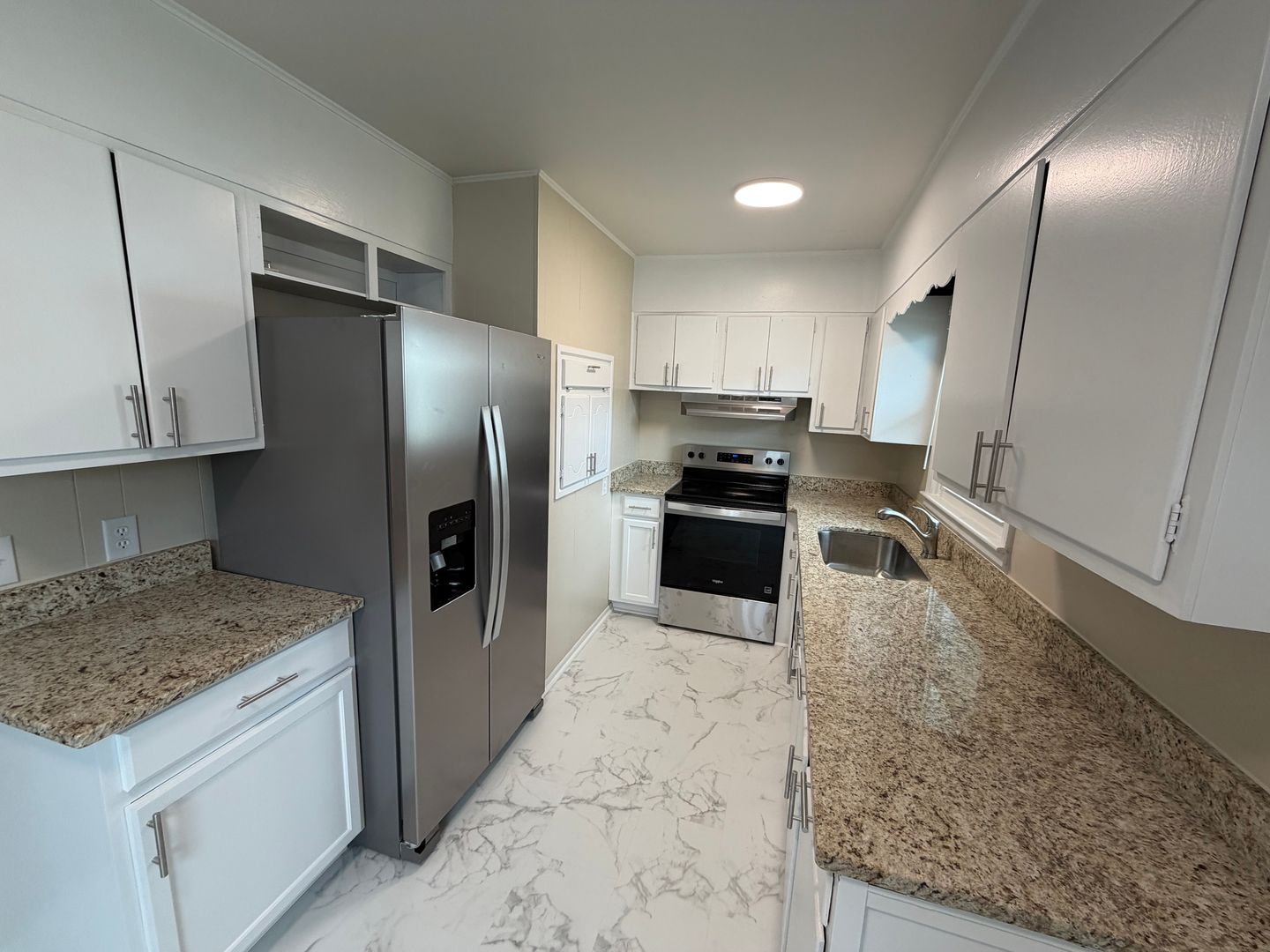 Remodeled 3 bedroom, 1 bath, refinished hardwood floors, remodeled bathroom, new flooring in kitchen and new stainless steel appliances, gas heat, central air, electric water heater. Detached carport, and storage building.