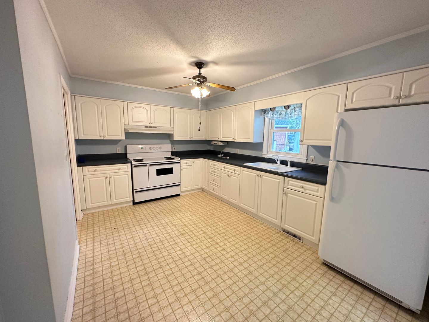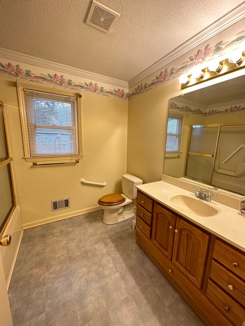 Nice 3-bedroom with 1.5 bath brick ranch house in Burlington for rent exclusively through Burlington Rentals. Spacious eat-in kitchen with separate dining area. Kitchen has refrigerator and oversized electric range. Nice size bedrooms with ceiling fans. Central air, gas heat, gas log fireplace in living room and gas water heater. Corner lot with fenced-in backyard, side porch and storage building.