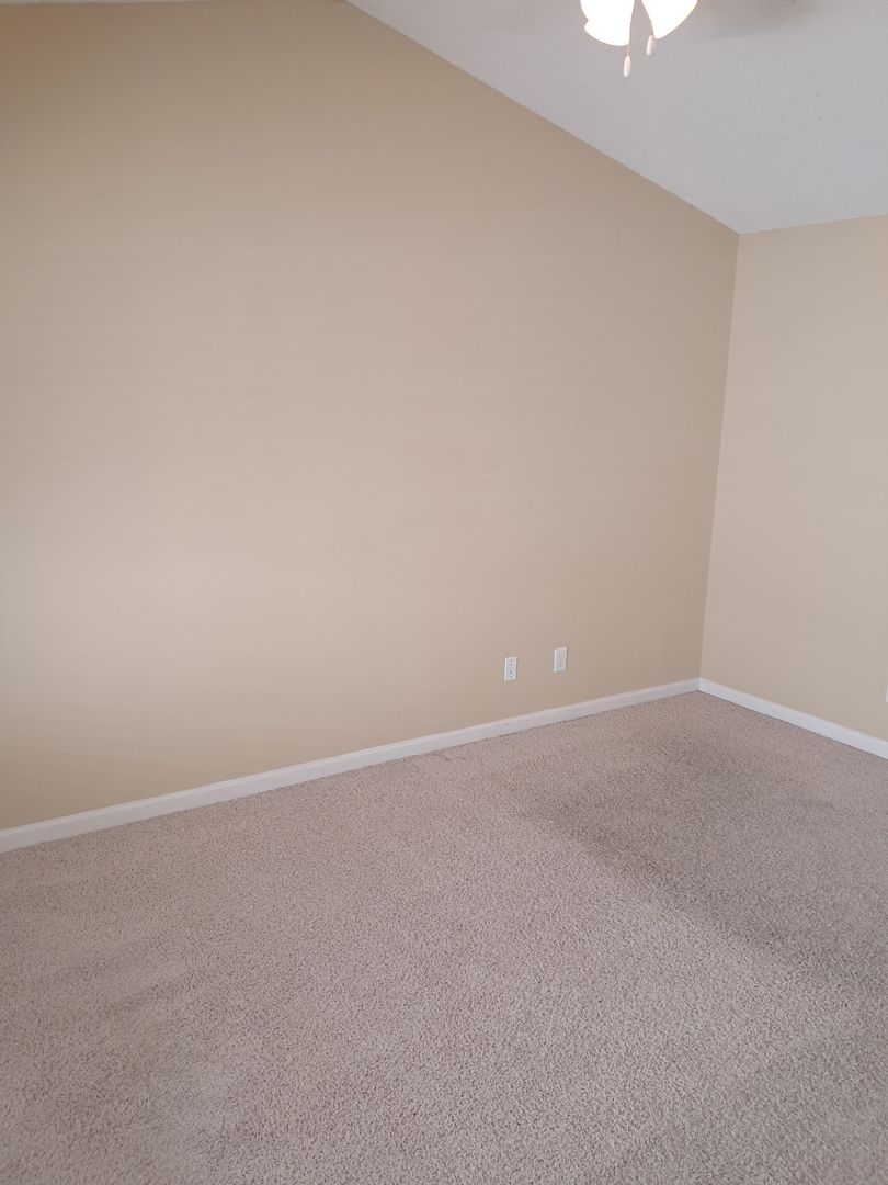 Nice 2 bedroom 2 bath single-level townhouse in Ridge Creek for rent exclusively through Burlington Rentals. Open floor plan with vaulted ceiling, ceiling fan and hardwood floors in living room. Kitchen with Refrigerator, Disposal, Electric range, dishwasher overlooking the living room and dining area. Bedrooms with carpet and ceiling fans. Gas heat, central air, city water/sewer, electric water heater. Fenced-in Patio on back of unit with storage room. Community pool. Call Burlington Rentals to schedule viewing (336) 228-7368