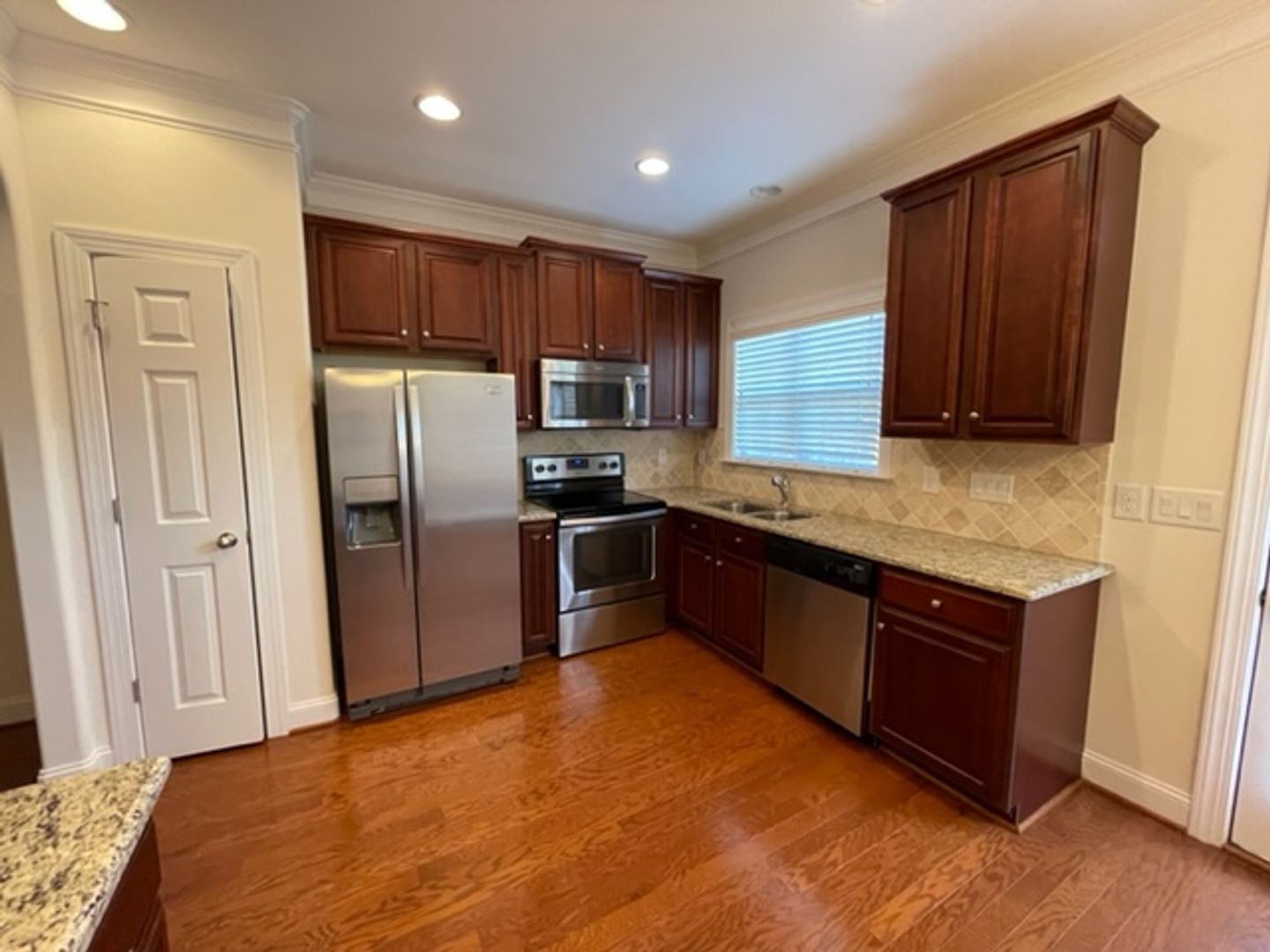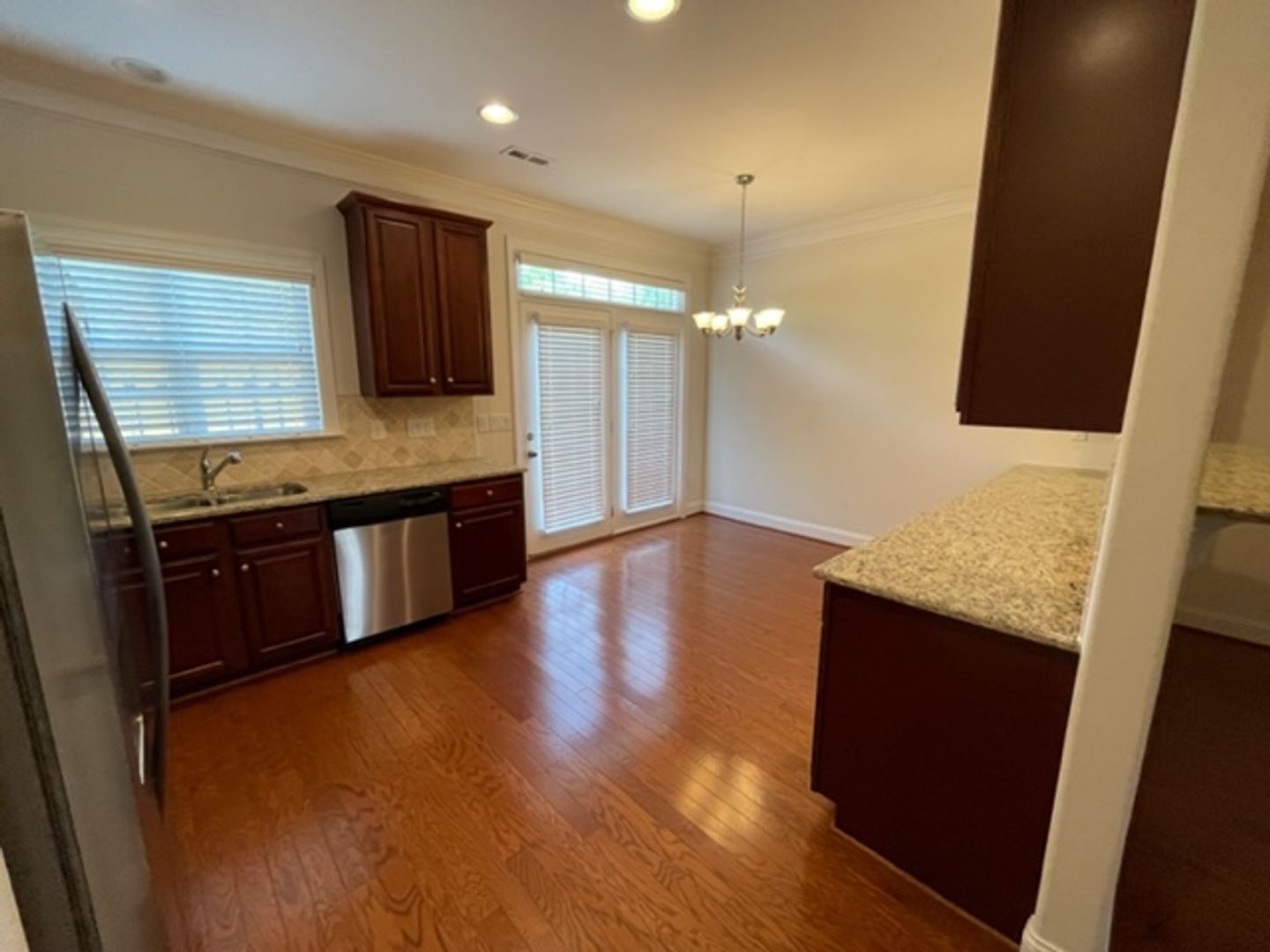 Nice 3 bedroom, 2.5 bath townhouse at Woods at Grove Park in Burlington. Looks brand new! Large living room with gas log fireplace and hardwood floors. Opens to eat-in kitchen with stainless steel appliances and granite countertops. Lots of counter space with opening to living room. Refrigerator, electric range, Microwave, dishwasher and disposal. Bedrooms upstairs. Gas heat, central air, City water/sewer. 1-car garage. Community pool and clubhouse.